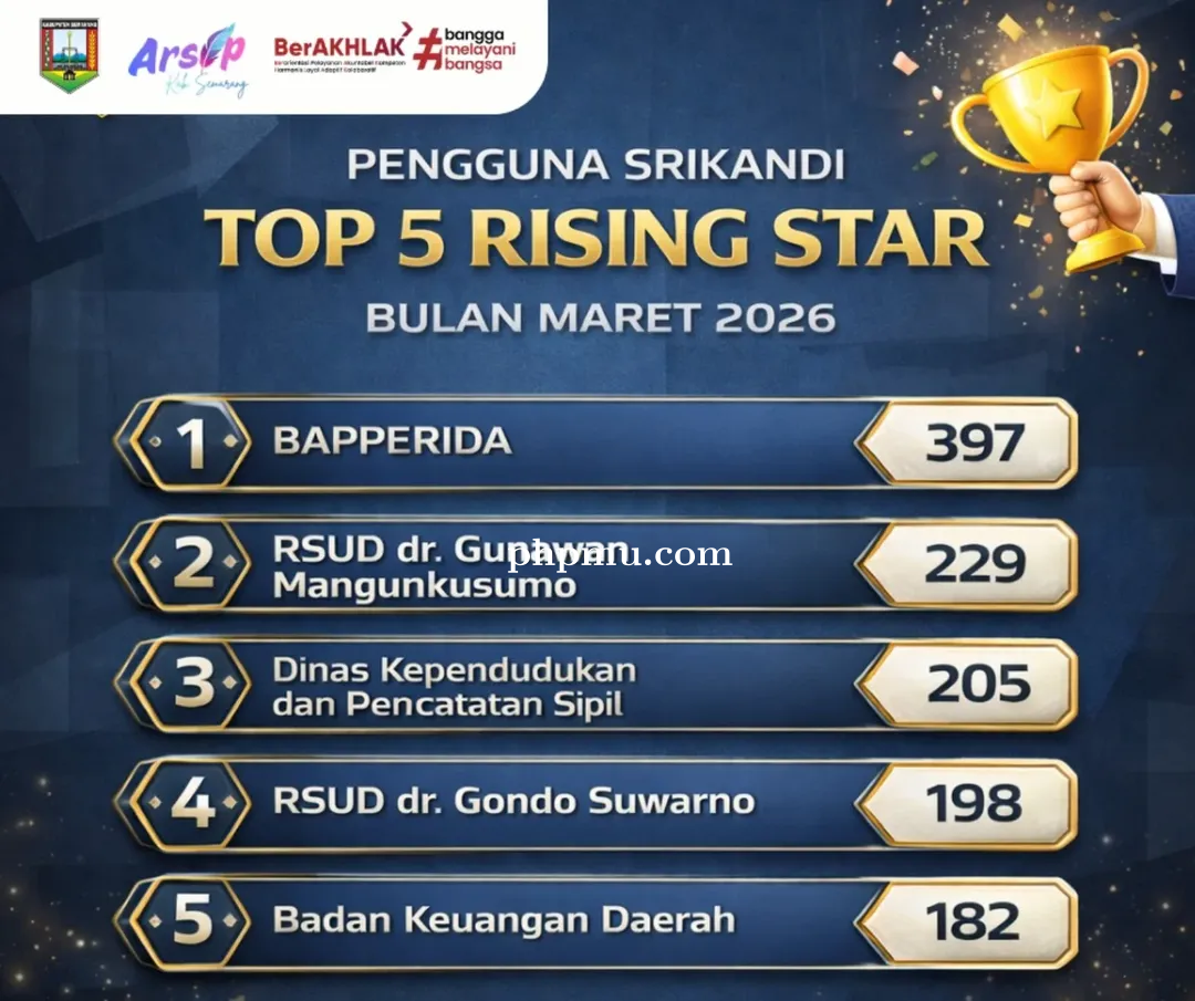 TOP 5 Rising Star bulan Maret 2026 penggunaan Aplikasi SRIKANDI0