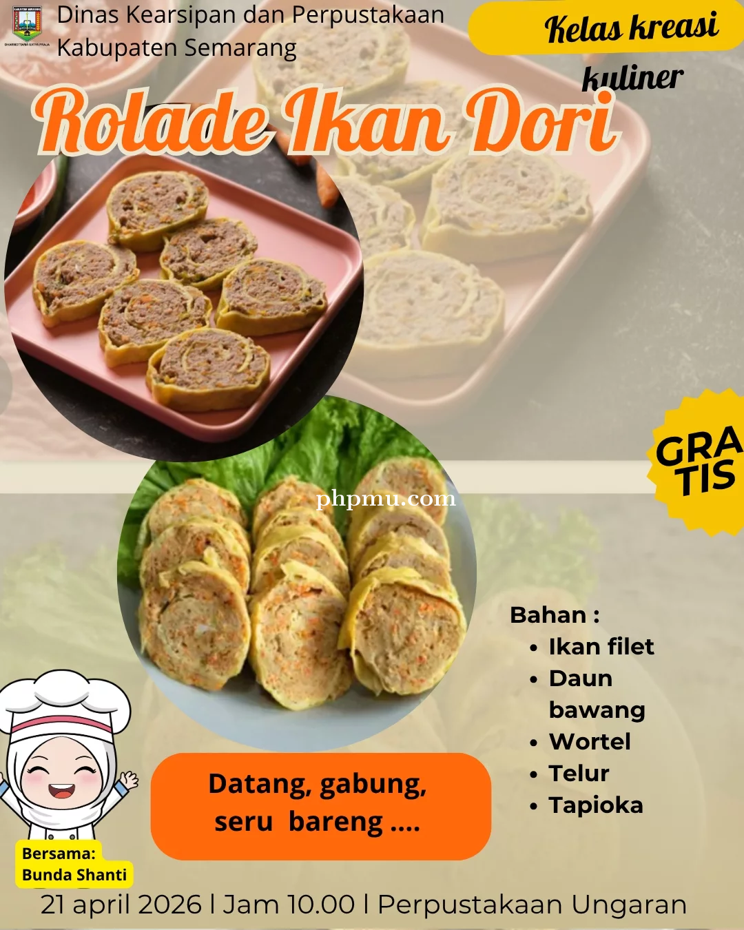 Kelas Keterampilan kuliner Di Hari Kartini *Kelas Kreasi untuk Ibu - Ibu* 'Rolade ikan Dori' BAHAN: Ikan filet Daun bawang Wortel Telur Tapioka Hari : SELASA Tanggal :21 april 2026 Jam :10.00 R. Baca lt.2 . . .